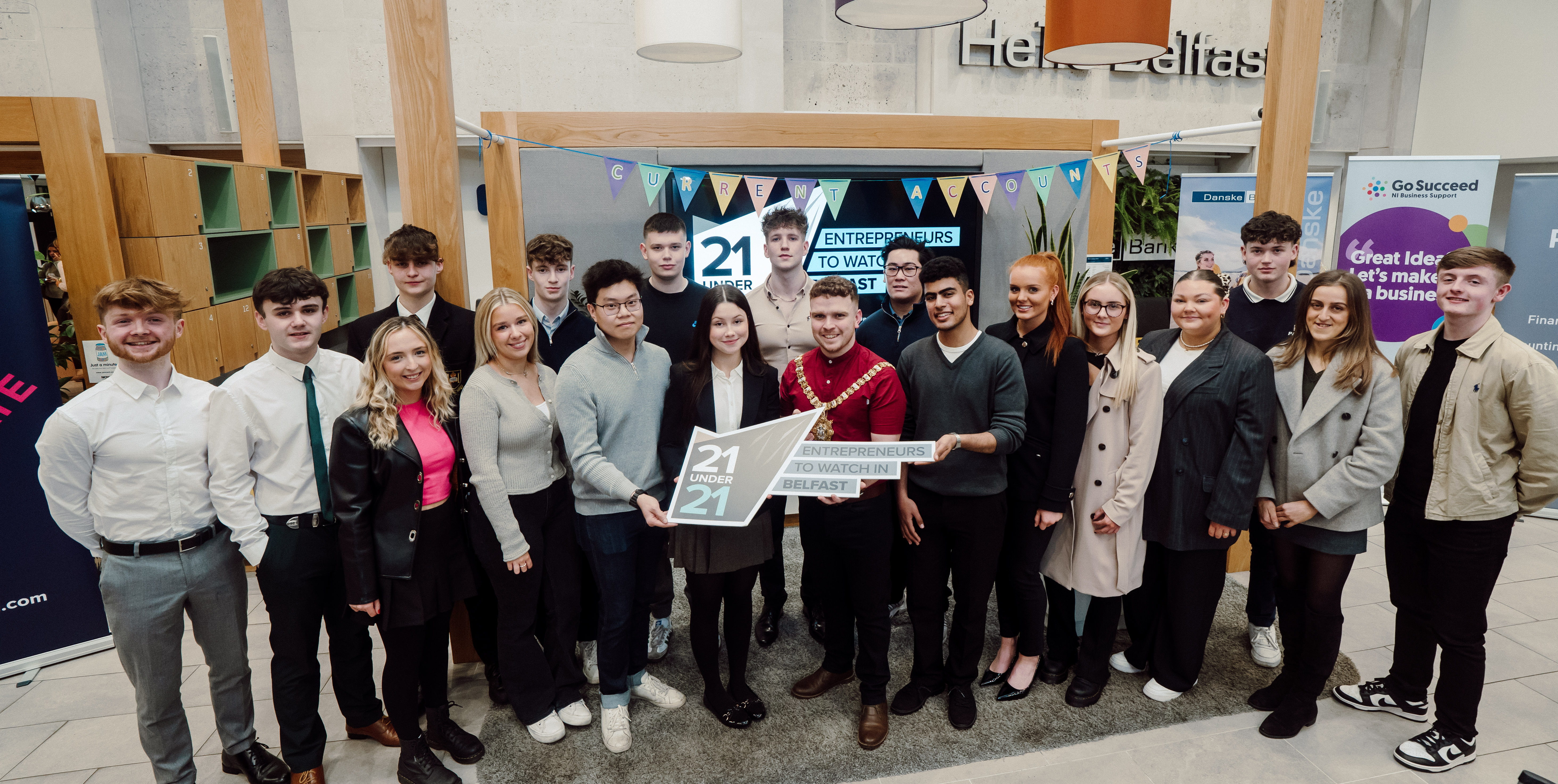 21 current and future Belfast entrepreneurs gathered at the finale of the 21 Under 21 Entrepreneurs to Watch initiative at Danske Bank on Thursday, March 21.