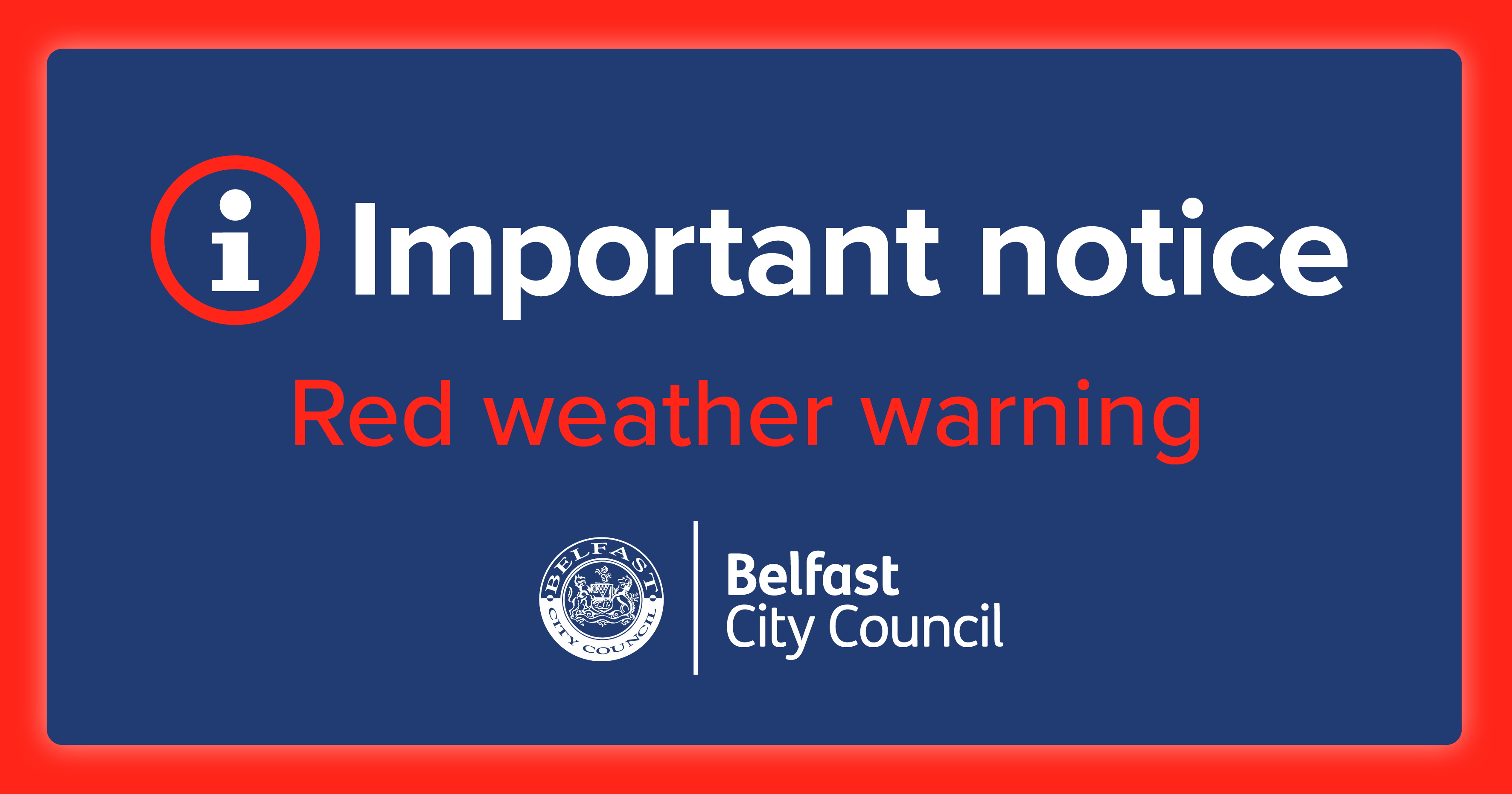 Due to the red weather warning now in place for Storm Éowyn, there will be closures and disruption to many Belfast City Council services on Friday 24 January.